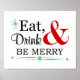 Este símbolo de estilo retro "Eat, Drink & Be Merry" es una combinación de negro, blanco con algunos colores de acento rojo y verde, con un toque de los años 50. Es el complemento perfecto para tu fiesta Navidad o cena de vacaciones. O, simplemente agréguela a tu casa para una maravillosa decoración de pared de Navidades.