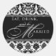 Coma, bebe y sé pegatina casada, con un elegante damasco estampado. Ideal para los bufés de bodas y dulces. ¡Asegúrate de visitar mi tienda para coordinar diseños y otras opciones de color!