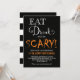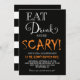 Ven a SCARE con esta moderna invitación de Halloween para comer, beber y ser asustado, con un trasero de rayas blancas y negras.