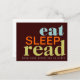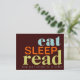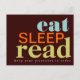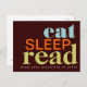 Comer, dormir, leer - mantener sus prioridades en orden. Graciosa postal para cualquier amante de los libros que a veces necesite recordatorios! En tonalidades retro y divertidas de verde azulado, naranja y verde lima.