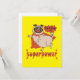 Sonriente juego de palabras con estilo de cómic de superhéroes de capa roja