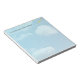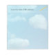 Negocio, escuela, oficina, bloc de notas, con fondo de cielo azul y nubes blancas.
