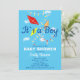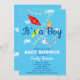 Cometas en el cielo, es una invitación de un niño a Baby Shower. El diseño de la ducha es muy bonito, con tres cometas en tonos rojos, amarillos y naranjas. Las cometas están volando en el cielo entre nubes. Añade tu texto.