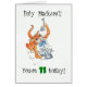 Una carta de cumpleaños para un niño de 11 años, con un gato y un tazón de pescado y la leyenda: "¡Santo Caballa! ¡Hoy tienes 12 años!" - de un ilustracion acuarela pintado a mano por Judy Adamson. Por favor, no dude en cambiar o borrar el mensaje interno.