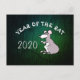 Ilustración linda de una rata al estilo de los cómics con 2020 y "Año de la Rata" para personalizar si lo deseas en una imagen metálica verde como fondo. Diseño en tarjeta postal horizontal. Tarjeta de felicitación, productos de manualidades y más coincidentes...