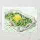 Imagen de ilustración de comida y bebidas antiguas con plato de servir con estampado de rosa de la abuela con judías verdes y mantequilla.