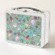 Caja de almuerzo con un ilustracion de comida basura muy lindo. Este divertido diseño de patrones tiene hamburguesa, patatas fritas, perritos calientes, pizza, helado, palomitas de maíz y muchos otros doodles de comida lindos.