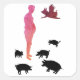 Comida feliz, pegatina de temas vegetarianos - un hombre gordo y un cerdo de ángel rosado , tema de arte para hacerte pensar en no comer animales.