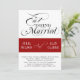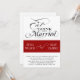 Modernos Rojo, Negro y Blanco Comen, Beben y se casen, Un tema de la boda negra de los zapatos invitaciones. Fuente de escritura vintage con un diseño moderno y audaz. Personalizar con sus nombres e información del boda. Diseño de Elke Clarke ©2011