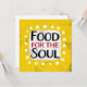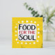 "Alimentos para el alma" es una cita inspiradora bonita o motivacional con una forma de acento blanco rodeada de puntos caprichosos de textura blanca.