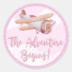 Este adorable pegatina cuenta con un avión rosa sencillo pero elegante con un texto de "The Adventure Begins". Los colores son luminosos y alegres, por lo que es perfecto para duchas de bebé, cumpleaños y otras ocasiones especiales. El plano de acuarela se dibuja con bordes redondeados y lisos y una ligera inclinación, lo que le da una sensación de movimiento. El conjunto es un diseño caprichoso y divertido que te hará sonreír.