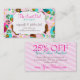Tarjeta de visita temática del búho colorido con la cupón/el descuento en la parte trasera - perfeccione para la panadería, el café, el boutique o la otra tienda al por menor. ¡Personalizar con su propio texto para una tarjeta perfectamente personalizada que asirá la atención de sus clientes! {{Para los colores o la ayuda específicos con la disposición, cáigame una línea en mel@creativemel.com - me placeré ayudar!}}