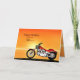 Una moto similar a una Harley que se alza junto al mar con una gloriosa puesta de sol naranja. Una gran carta para cualquiera que le guste el ciclismo y las motocicletas. Vea toda la gama de tarjetas para edades y relaciones en mi tienda. Todos los derechos de autor de arte Norma Cornes