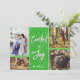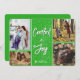 Muestra tus fotos familiares favoritas con una tarjeta de Navidad que exclama "Confort y Alegría". Un fondo verde con el aspecto de purpurina, y líneas limpias alrededor de tus fotos. ¡Será divertido crear tu conjunto de Navidades para esta tarjeta!