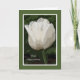 Un magnífico tulipán blanco adorna el exterior de esta tarjeta de solidaridad de duelo y un bello verso está por dentro haciendo un encantador agradecimiento por su tarjeta de simpatía. Derechos de autor Kathy Henis