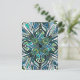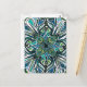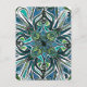 "Compasión" - Obra de Anastacia Gutiérrez Una mandala abstracta dibujada con lápiz y tinta en un llamativo estallido de estrellas y patrón de flores. Colorido con lápiz en tonos azules y verdes.
