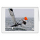 La fotografía muestra un bote de catamarán de competición preparándose para rodear un marcador en la bahía de Sarasota, Florida.