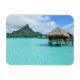 Magnate de fotos rectangular con un lujoso complejo de bungalows sobre el agua en la clara laguna azul de la isla pacífica de Bora Bora, cerca de Tahití en la Polinesia Francesa.