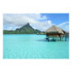 Foto de un lujoso complejo de bungalows sobre el agua en la laguna azul clara de la isla pacífica de Bora Bora, cerca de Tahití en la Polinesia Francesa.