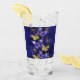 Composición de lujosas mariposas de zafiro y joyas de oro sobre fondo de textura azul.