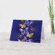 Composición de lujosas mariposas de zafiro y joyas de oro sobre fondo de textura azul.