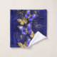 Composición de lujosas mariposas de zafiro y joyas de oro sobre fondo de textura azul.