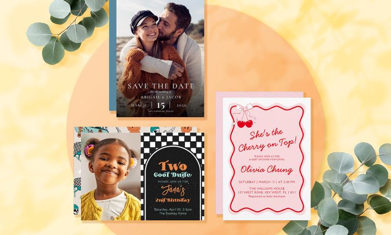 Tarjetas, invitaciones y accesorios para envío que harán que tu día sea único.