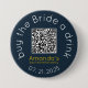 ¡Que fluyan las bebidas (y los buenos momentos) con este divertido y práctico botón de despedida de soltera! Con la frase "Compra una bebida a la novia" y un código QR escaneable, este botón facilita que los asistentes a la fiesta y los desconocidos contribuyan a la gran noche de la novia: simplemente escaneen y envíen un fondo para bebidas.