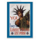 Poster patriótico de la Primera Guerra Mundial con la Estatua de la Libertad implorando al espectador que "... compre un bono de libertad para que no perezca" por G.R. Macauley, 1917.