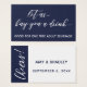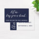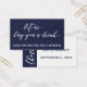 Las palabras "déjennos comprarle una bebida" fueron representadas como un superpuesto gráfico tipográfico con un tipo de letra moderno y con letras a mano. Debajo encontrarás las palabras "Buena para una bebida para adultos gratis". Esta copia se puede modificar si lo desea. En la parte posterior, el "tipo elegante" se utilizó para crear un gráfico que decía "¡Saludos!" que se rotó 90 grados y se agregó sobre la banda sólida a lo largo del lado izquierdo. El otro tipo se manejó en sentido inverso: sus nombres y fechas aparecerán sobre un fondo blanco. Puede cambiar el fondo a cualquier color que desee. // 9 //