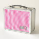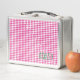 Patrón de tablero de ajedrez diagonal rosa y blanco con NOMBRE verde personalizado en la parte inferior. Texto fácil de personalizar, color de texto. Cajera de chicas. Mezcla y combina colecciones completas de escolares/niños por TMCdesign.