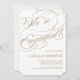Esta invitación presenta un falso rosa purpurina de oro y dice "Estamos comprometidos.
