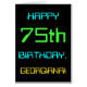 Este sencillo y divertido diseño de tarjetas de felicitación de cumpleaños incluye un mensaje como "¡FELIZ CUMPLEAÑOS 75, GEORGIANA!". También presenta una apariencia divertida inspirada en la computación digital. El nombre en la parte delantera y el mensaje en la parte interior se pueden personalizar. Se podría enviar o dar a alguien que esté celebrando su cumpleaños setenta y cinco, y que tal vez trabaje como programador de computadoras, desarrollador de software, administrador de bases de datos, administrador de redes, ingeniero de electrónica, o que de otra manera disfrute usando computadoras. [~Z0000100]