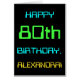 Este sencillo y divertido diseño de tarjetas de felicitación de cumpleaños incluye un mensaje como "¡FELIZ 80 cumpleaños, ALEXANDRA!". Su apariencia está inspirada en el campo de la computación digital. El nombre en la parte delantera y el mensaje en la parte interior se pueden personalizar. Se podría enviar o dar a alguien que esté celebrando su ochenta cumpleaños, y que tal vez trabaje como administrador de bases de datos, programador de computadoras, administrador de redes, desarrollador de software, ingeniero eléctrico o que de otra manera disfrute usando computadoras. [~Z0000100]