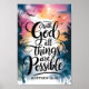 Este vibrante diseño acuático presenta un majestuoso cielo y aves en vuelo, junto con el poderoso mensaje "Con Dios todas las cosas son posibles