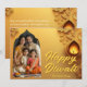 Front Side: A la izquierda, la foto de su personalizado está enmarcada en un arco elegante con bordes dorados, evocando la calidez de la arquitectura del templo y la intimidad de la celebración familiar. El retrato irradia alegría, tradición y cercanía, capturando perfectamente el corazón del Diwali. A la derecha florece un fondo dorado con motivos florales y de hoja, anclado en una diya brillante que simboliza la luz, la esperanza y la renovación. "Feliz Diwali" flota encima con elegante cursiva, con tu nombre de familia enclavado debajo en una fuente limpia y atemporal. Back Side: El tema dorado continúa, envolviendo lo inverso en riqueza. El lado izquierdo presenta su mensaje personalizado, ya sea poético, lúdico o sincero, escrito en un guión elegante. El lado derecho permanece abierto para texto adicional, una cita, o incluso una segunda foto si lo desea. La disposición es equilibrada, el ambiente es de celebración y la narración es tuya.