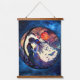 Una tapicería de madera recubierta de pared con un diseño de cristal de una pareja y una luna.