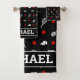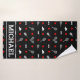 Colores clásicos: patrón de tenis negro, blanco y rojo con raquetas de tenis, pelotas de tenis y un gorro de fondo negro. Nombre del personalizable. ...