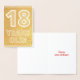 El frente de este enfático, audaz y llamativo diseño de tarjetas de felicitación de Relieve metalizado de oro con temática de cumpleaños muestra el mensaje "¡18 AÑOS!". El interior incluye un mensaje de bienvenida de cumpleaños que se puede editar. Una tarjeta de felicitación de cumpleaños como esta puede ser dada a alguien que está celebrando su décimo octavo cumpleaños. [~Z0000400]