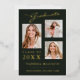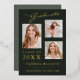 Bellamente elegantes 3 tarjetas de invitación de graduación fotográfica. Con texto moderno con caligrafía en su elección de Relieve metalizado oro, plata o rosa. El diseño se complementa con un elegante fondo verde sabio oscuro en la parte delantera, con un color verde claro y sabio en la parte posterior. La parte posterior de la tarjeta ofrece un espacio de texto de invitación personalizado para ese graduado especial. Para ver más artículos como este, visita mi tienda aquí en "www.Zazzle.com/LakeViewCardCo". ¡Gracias