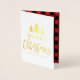 Envíe a sus amigos y familiares una elegante tarjeta de felicitación fotográfica de vacaciones esta temporada de Navidades. Esta hermosa y rústica tarjeta de Navidades incluye las palabras "Feliz Navidad" en un moderno guion con árboles de Navidad en Relieve metalizado de oro real, un marcador de posición para la foto de su personalizado y un marcador de posición para el saludo de su personalizado. El interior también presenta un estilo rústico de búfalo rojo y negro.