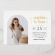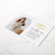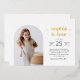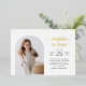 Una invitación moderna de cumpleaños con tu propia foto en forma de arco. El texto del título se imprime en Relieve metalizado oro real.