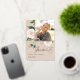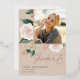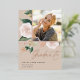 La elegante invitación de graduación de fotos florales presenta una foto cuadrada enmarcada por flores acuarelas y follaje en tonos de melocotón, blanco, marfil y verde sabio inspirados en el desierto boho. El guarnecido Rosa de Relieve metalizado dorado completa el aspecto. Personalice con el nombre de su graduado, el año de clase y la escuela. Añade un mensaje personal a la parte posterior, junto con una foto adicional.