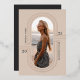 Un diseño de invitación de graduación simple y elegante con influencias artísticas deco, con el nombre de tu graduado, el curso de graduación y la escuela, organizado alrededor de un elemento arqueado adornado con arte de la línea de Relieve metalizado oro rosa, con una foto vertical en el centro. Personalice la parte posterior con un mensaje personalizado y una foto adicional.