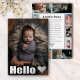 Presentamos nuestra elegante postal de invitación para bebés "hola". Una plantilla moderna que te permite personalizar con 11 de tus fotos favoritas de tu recién nacido. En la parte delantera de esta tarjeta hay espacio para una imagen completa con tipografía de Relieve metalizado plateado real. Al revés hay espacio para 10 fotos más. Personalizar con su propio texto y nombres para completar este elegante y sofisticado conservador que su familia y amigos apreciarán en los próximos años.