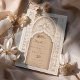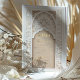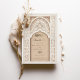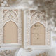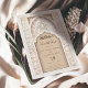 Comience el viaje hasta su día especial con esta exquisita invitación a Salvar la Fecha, capturando la esencia de la belleza arquitectónica islámica. Una magnífica arcada, acentuada por un minucioso andamio y un emblema caligráfico clásico, crea un punto focal majestuoso, mientras que las columnas de chevron enmarcan el diseño en sutiles tonos crema y taupe. Esta carta, elaborada en una paleta de colores que va desde la arena hasta el marfil, refleja una estética refinada. El papel texturizado añade profundidad, insinuando el evento lujoso por venir. Envía un primer vistazo a tu boda que es tan memorable y atemporal como el propio día.