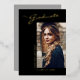 Este verdadero Relieve metalizado, moderno y elegante tarjeta de invitación de graduación, presenta elementos de diseño de texto moderno mezclado con un elegante guión de caligrafía. La foto horizontal de los graduados se coloca artísticamente en la parte delantera de la tarjeta, mientras que la parte posterior ofrece espacios de texto personalizados para información sobre la graduación y el viaje futuro. Los fondos son negros en la parte delantera y gris plateado en la parte posterior o fácilmente los personalizares a los colores elegidos. Para ver más artículos como este, visita mi tienda aquí en "www.Zazzle.com/LakeViewCardCo". ¡Gracias