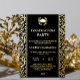 Elegante Invitación a graduación de cuadro de Relieve metalizado, Personalice la invitación a graduación en negro y oro añadiendo el nombre y los detalles del graduado.