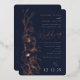 Esta invitación a la boda muestra un rico fondo azul marino con rosas de ilustraciones florales dorados, creando un aspecto atemporal y lujoso. El elegante tipo de letra del guión combinado con el texto clásico del serif logra un equilibrio entre el romance moderno y la sofisticación refinada. Delicados acentos metálicos y una abeja suavemente ilustrada añaden un toque caprichoso pero de gama alta, perfecto para bodas nocturnos o eventos formales con un toque romántico y botánico. Para realizar cambios avanzados, seleccione la opción "Hacer clic en más personalizar" en Personalizar esta plantilla.