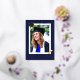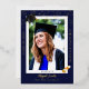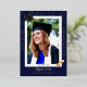 Comparta este momento especial con su familia y amigos. Esta elegante tarjeta de invitación de fotos azul de la Marina incluye Relieve metalizado dorado y texto que puede personalizar fácilmente en la sección de edición de diseño.